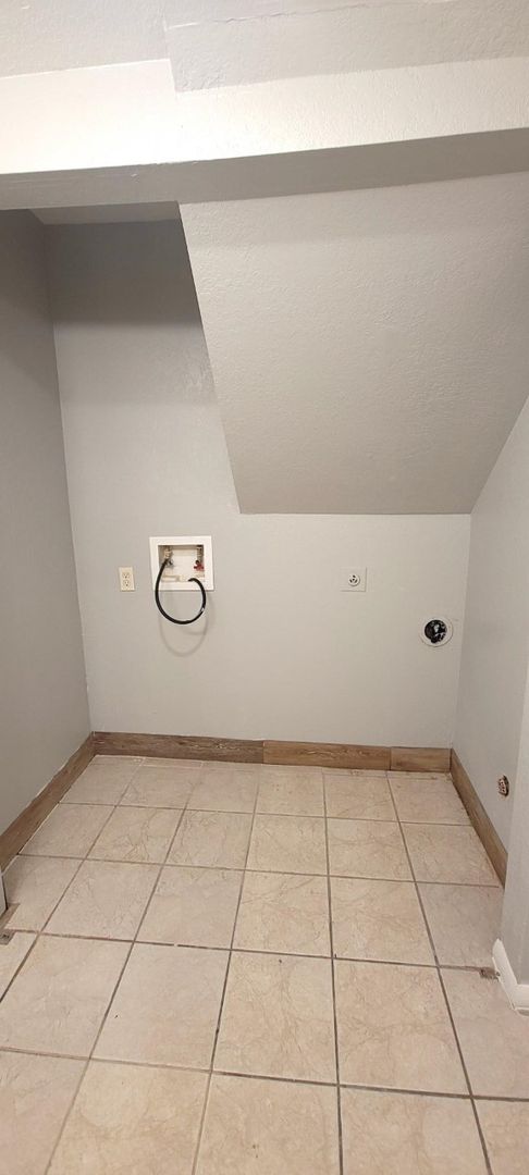 The kitchen is fully equipped with an electric range, full-size refrigerator, and lots of cabinetry for all your storage needs. Plus, you'll love the convenience of having a washer and dryer hookup right in the first floor bathroom.